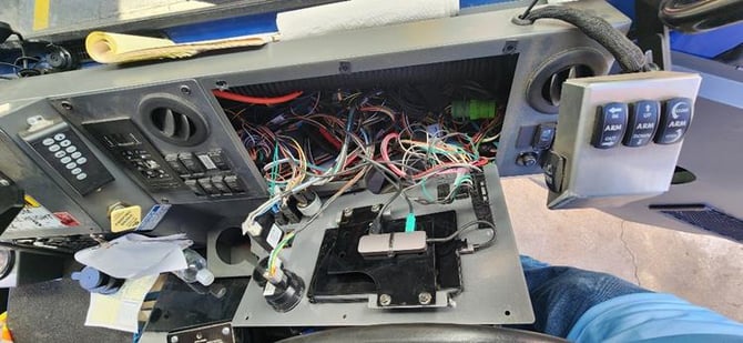 Component Removal: Always remove Kvaser cables, J1939 splitters, and power supplies. These are not used in analog setups and create clutter that interferes with proper panel fitment.