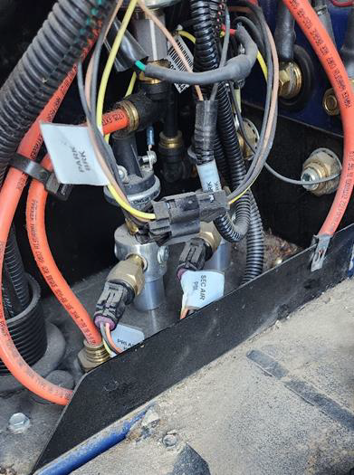 Plug in the three green Molex connectors and the two wires labeled "Air Gauges."