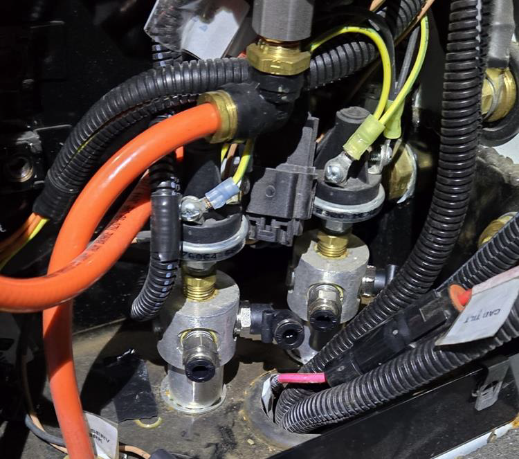 Disconnect wiring and remove the two pressure transducers and pipe bushings. Discard these.