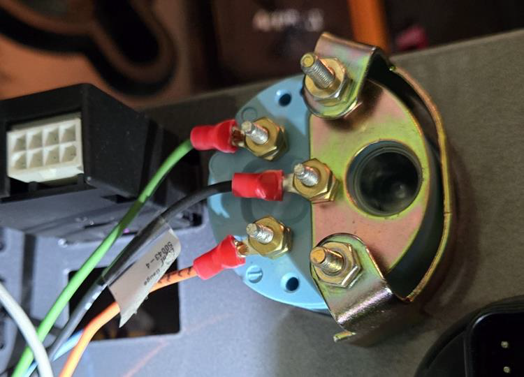 If the gauge light lacks spade connectors, install 16-18 AWG male spades to tie into the dash wiring.